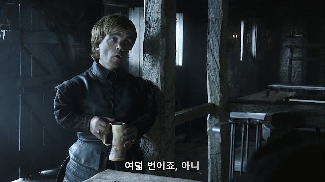 Tyrion reenters the hall to speak and drink with Aemon and Lord Commander.